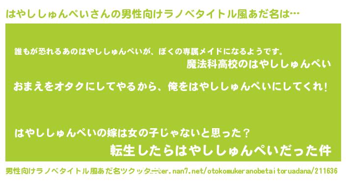 | ヒーロー風カッコイイあだ名 | 『正義の使者はやししゅんぺい』 |