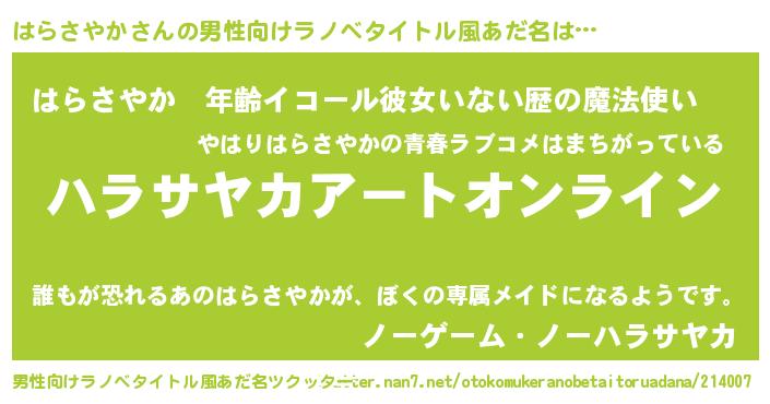 | 胡散臭い通販商品みたいなあだ名 | 『億万長者になれるブレスレット…その名も「はらさやか」』 |