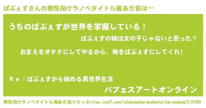 | 女子向けラノベタイトル風あだ名 | 『ばぶぇす夫妻のなれそめ』 |