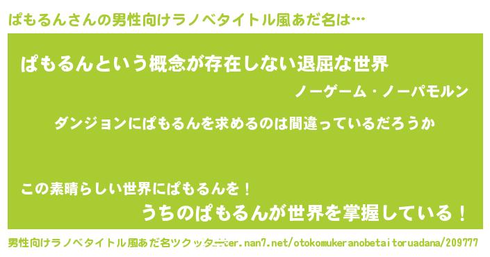 | 女子向けラノベタイトル風あだ名 | 『ぱもるんは平凡を望む』 |