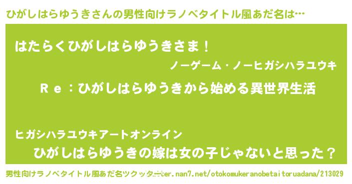 | 意味不明あだ名 | 『自称ひがしはらゆうき』 |