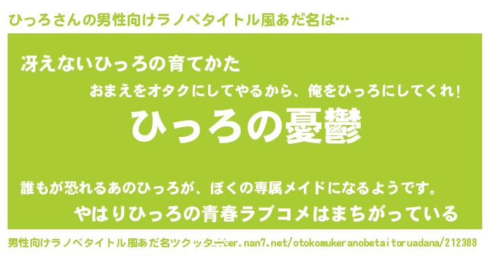 | 胡散臭い通販商品みたいなあだ名 | 『必ず成功するブレスレット…その名も「ひっろ」』 |