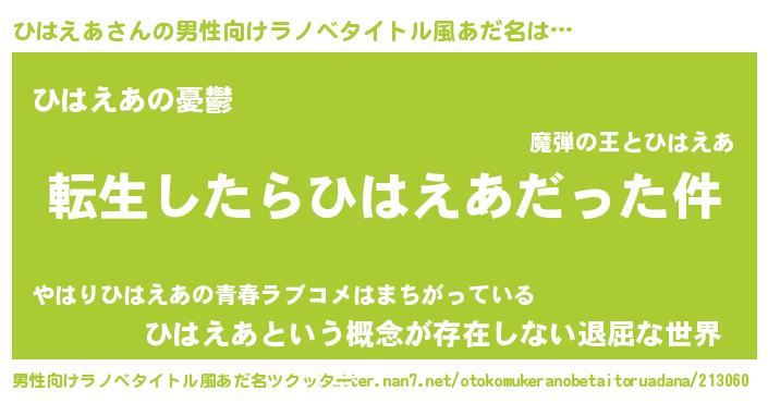 ひはえあさんの男性向けラノベタイトル風あだ名をツクッター!