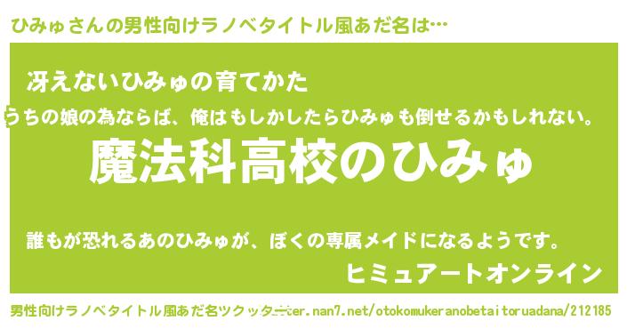 | 女子向けラノベタイトル風あだ名 | 『ひみゅアンティーク』 |