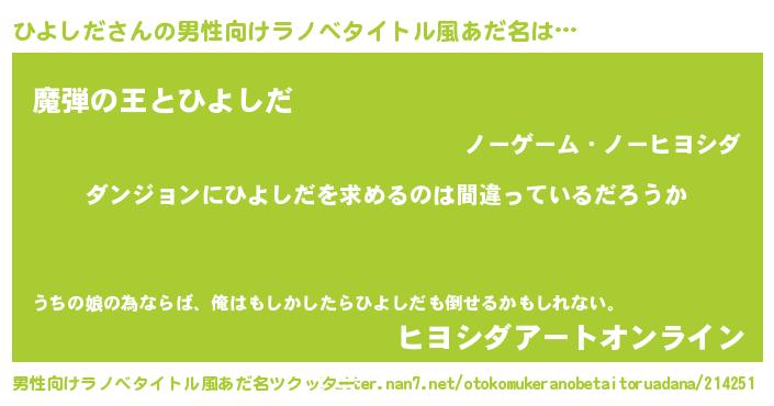 | 女子向けラノベタイトル風あだ名 | 『ひよしだは平凡を望む』 |