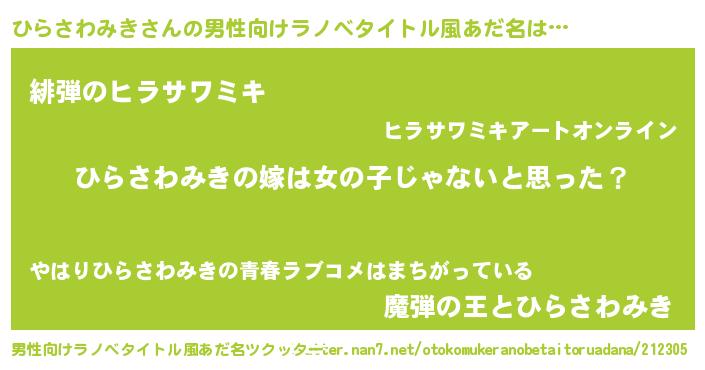 | 女子向けラノベタイトル風あだ名 | 『ひらさわみき様がみてる』 |