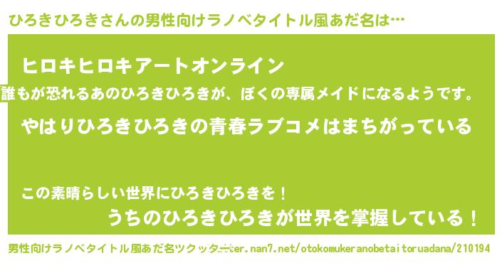 | 胡散臭い通販商品みたいなあだ名 | 『幸せが訪れる高級そうな壺…その名も「ひろきひろき」』 |