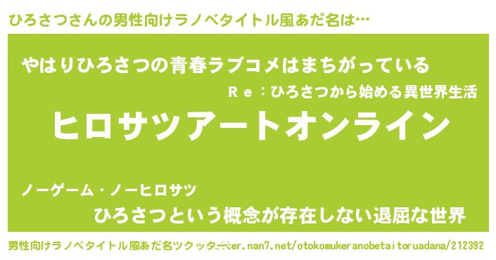 | ファンタジー風あだ名 | 『ヒロフェル』『エターナルヒロサツー』 |