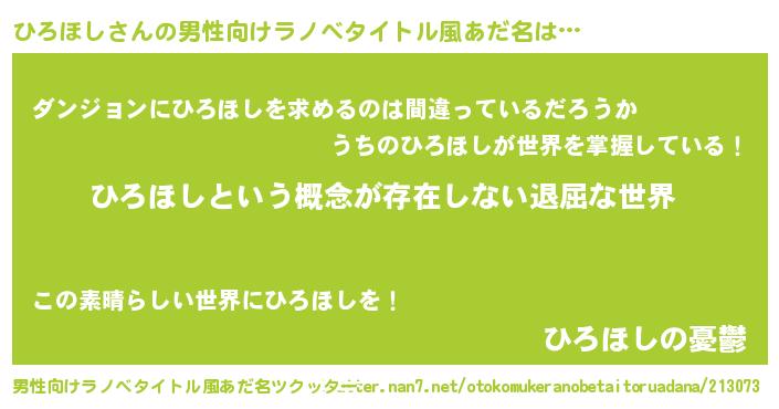 | ヘコむあだ名 | 『ひろほし(笑)』『ひろっちょ』 |