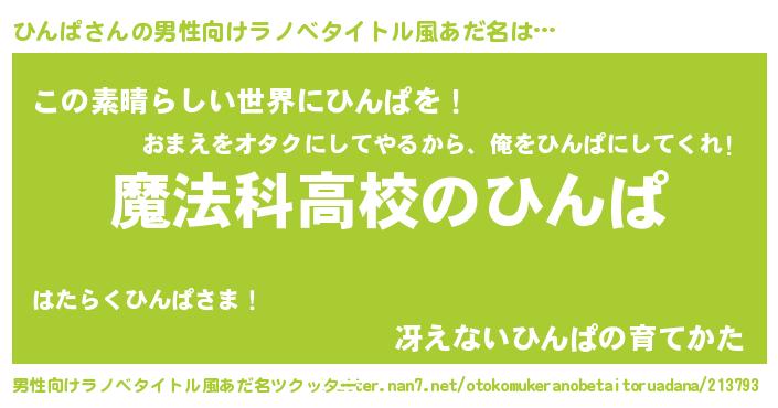 | 女子向けラノベタイトル風あだ名 | 『ひんぱなんてお断りですっ。』 |