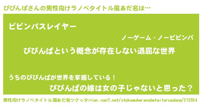| 胡散臭い通販商品みたいなあだ名 | 『絶対に幸福をもたらす健康食品…その名も「ぴぴんぱ」』 |