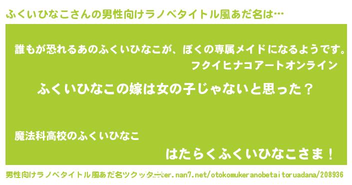 | 女子向けラノベタイトル風あだ名 | 『ふくいひなこ様がみてる』 |