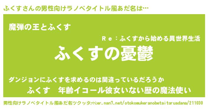 | 胡散臭い通販商品みたいなあだ名 | 『モテモテ間違いなし霊験あらたかなお札…その名も「ふくす」』 |