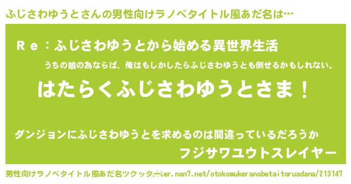 | 意味不明あだ名 | 『自称ふじさわゆうと』 |