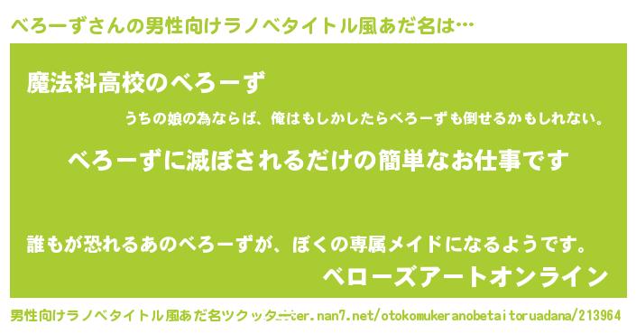 | 意味不明あだ名 | 『自称べろーず』『ペロリンべろーず』 |