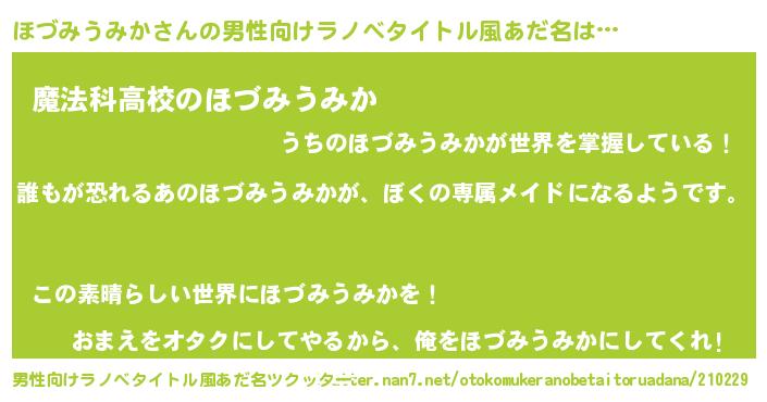| 女子向けラノベタイトル風あだ名 | 『異世界でカフェほづみうみかを開店しました。』 |