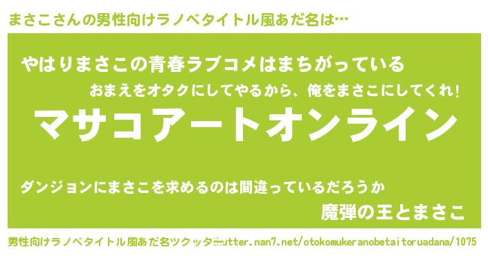 | 女子向けラノベタイトル風あだ名 | 『誰かこのまさこを説明してください! ~契約から始まるウェディング~』 |