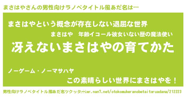 | 伝説のあだ名 | 『古より伝わる吟遊詩人まさはや』 |