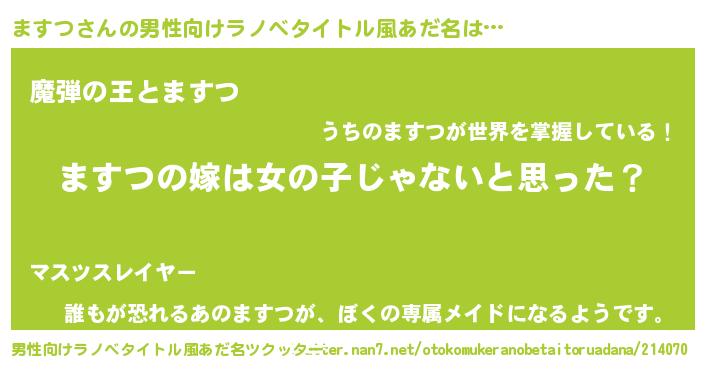 | 女子向けラノベタイトル風あだ名 | 『ますつ様がみてる』 |