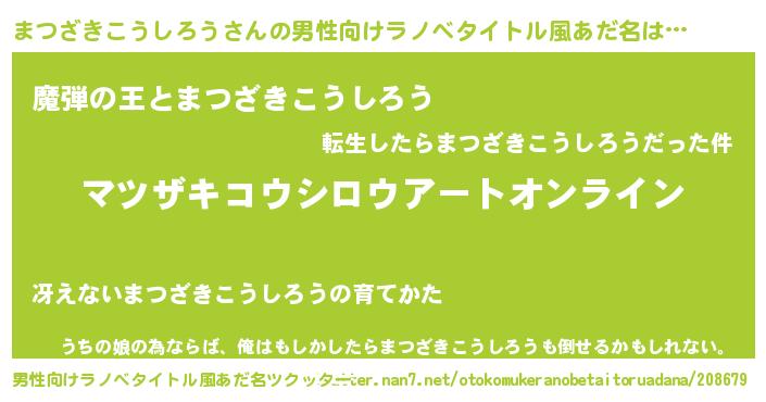 | 女子向けラノベタイトル風あだ名 | 『誰かこのまつざきこうしろうを説明してください! ~契約から始まるウェディング~』 |
