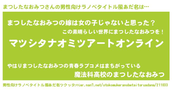 | 胡散臭い通販商品みたいなあだ名 | 『億万長者になれる水晶球…その名も「まつしたなおみつ」』 |