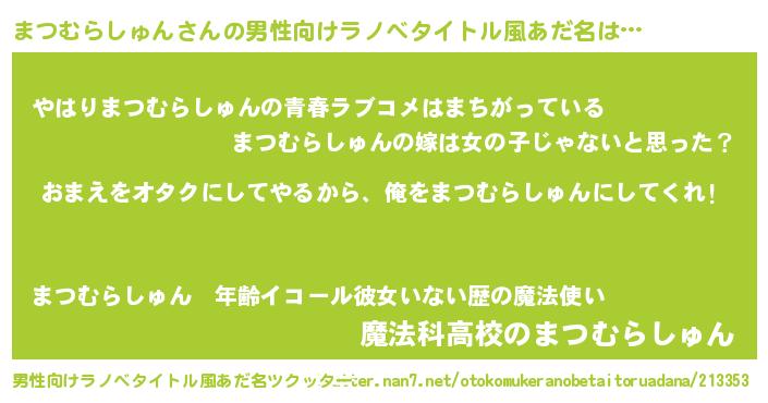 | 女子向けラノベタイトル風あだ名 | 『まつむらしゅん恋絵巻』 |