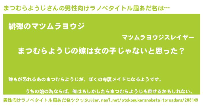 | 女子向けラノベタイトル風あだ名 | 『まつむらようじ様がみてる』 |