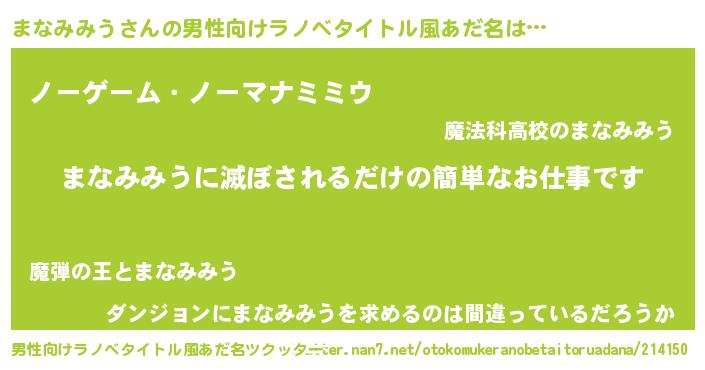 | ヘコむあだ名 | 『まなお』『まなみみう(笑)』『牛乳』 |