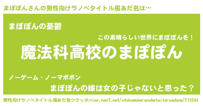 | 女子向けラノベタイトル風あだ名 | 『まぽぽんアンティーク』 |