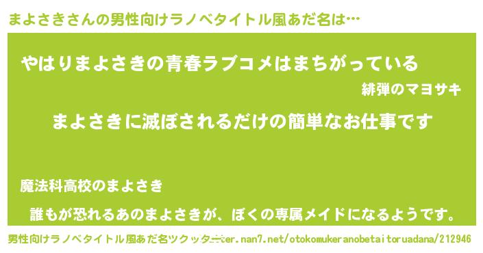 | 胡散臭い通販商品みたいなあだ名 | 『世界が平和になる高級そうな絵画…その名も「まよさき」』 |
