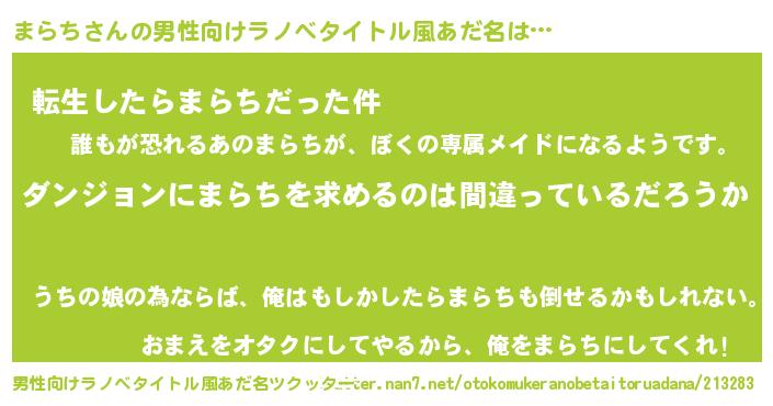 | 女子向けラノベタイトル風あだ名 | 『まらちは平凡を望む』『まらちの婚約者』 |