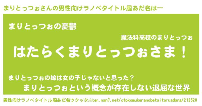 | 胡散臭い通販商品みたいなあだ名 | 『モテモテ間違いなしブレスレット…その名も「まりとっつぉ」』 |