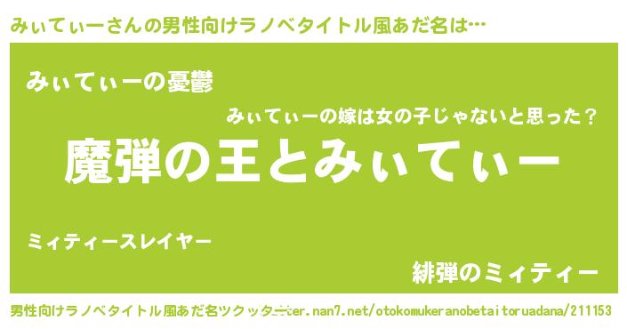 | 女子向けラノベタイトル風あだ名 | 『乙女ゲームの破滅フラグしかない悪役みぃてぃーに転生してしまった…』 |