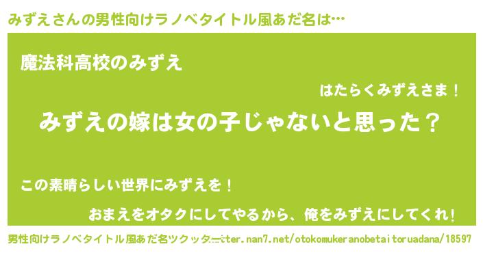 みずえさんの男性向けラノベタイトル風あだ名をツクッター!