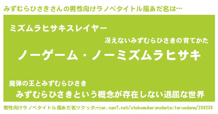 | ヘコむあだ名 | 『みずむらひさき(小並感)』『酢こんぶ』 |