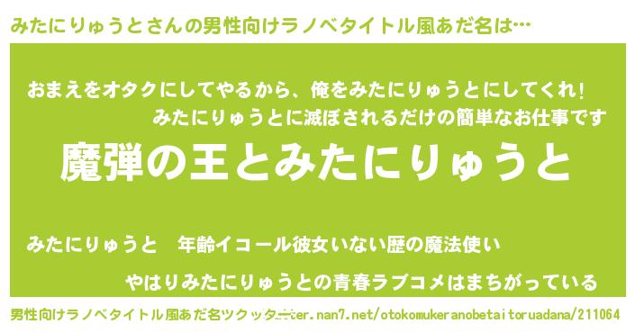 | 意味不明あだ名 | 『住所不定無職みたにりゅうと(40歳)』 |