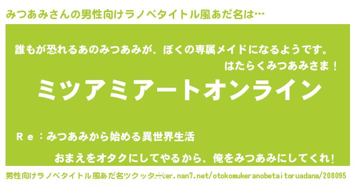 | ヘコむあだ名 | 『みつにゅー』『みつあみ(小並感)』 |