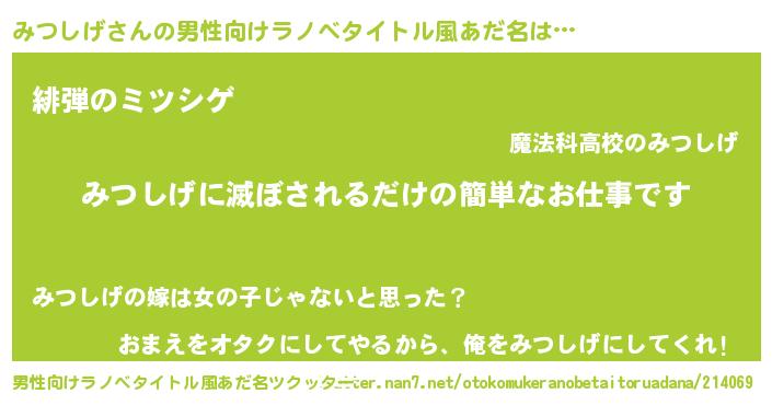 | ヒーロー風カッコイイあだ名 | 『天空の使者みつしげ』『黄金騎士ミツ』 |