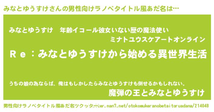 | 女子向けラノベタイトル風あだ名 | 『みなとゆうすけストレイドッグス』 |