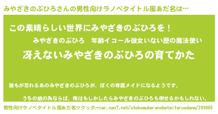 | 意味不明あだ名 | 『住所不定無職みやざきのぶひろ(98歳)』 |
