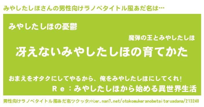 | ヘコむあだ名 | 『みやふぇ~』『みやを』『豆乳』 |