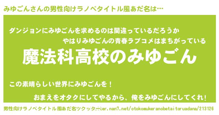 | 女子向けラノベタイトル風あだ名 | 『みゆごんなんてお断りですっ。』 |