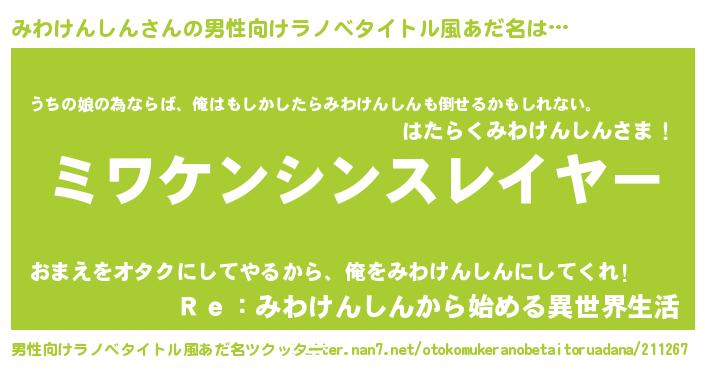 | 胡散臭い通販商品みたいなあだ名 | 『幸せが訪れる高級そうな絵画…その名も「みわけんしん」』 |