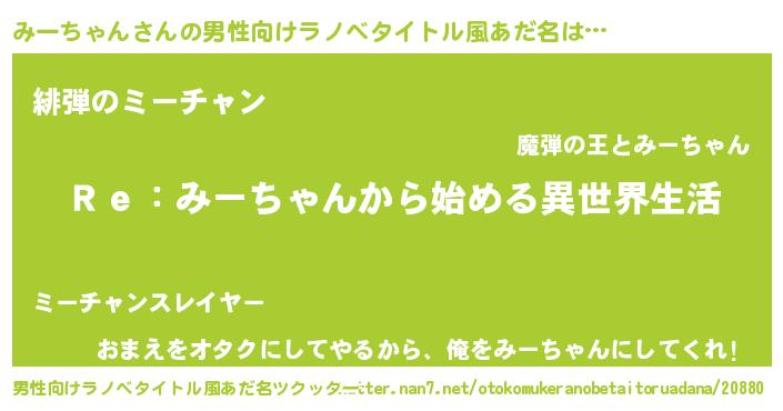 | 意味不明あだ名 | 『自称みーちゃん』『永久保存みーちゃん』 |