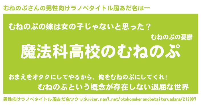 | 女子向けラノベタイトル風あだ名 | 『むねのぷアンティーク』 |