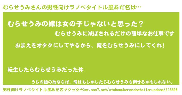 | 女子向けラノベタイトル風あだ名 | 『むらせうみ夫妻のなれそめ』 |