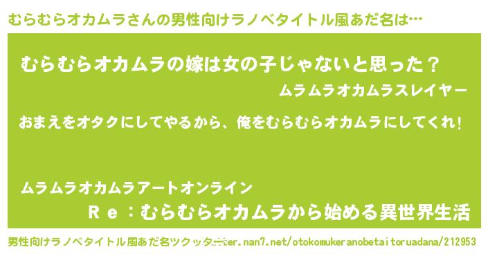 | ポケモン風あだ名 | 『ムックウザ』『ヒムラムラオカムラ』 |