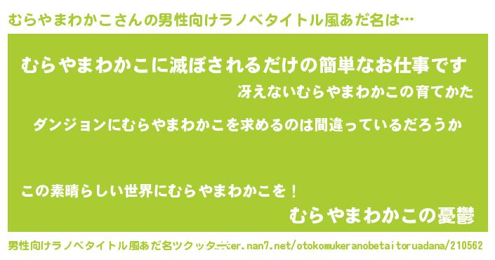 | 女子向けラノベタイトル風あだ名 | 『むらやまわかこは平凡を望む』 |