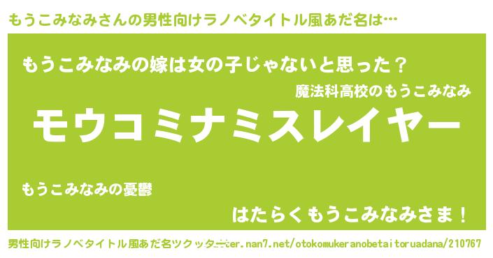 | 胡散臭い通販商品みたいなあだ名 | 『信頼と実績のサプリメント…その名も「もうこみなみ」』 |