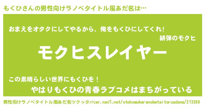 もくひさんの男性向けラノベタイトル風あだ名をツクッター!